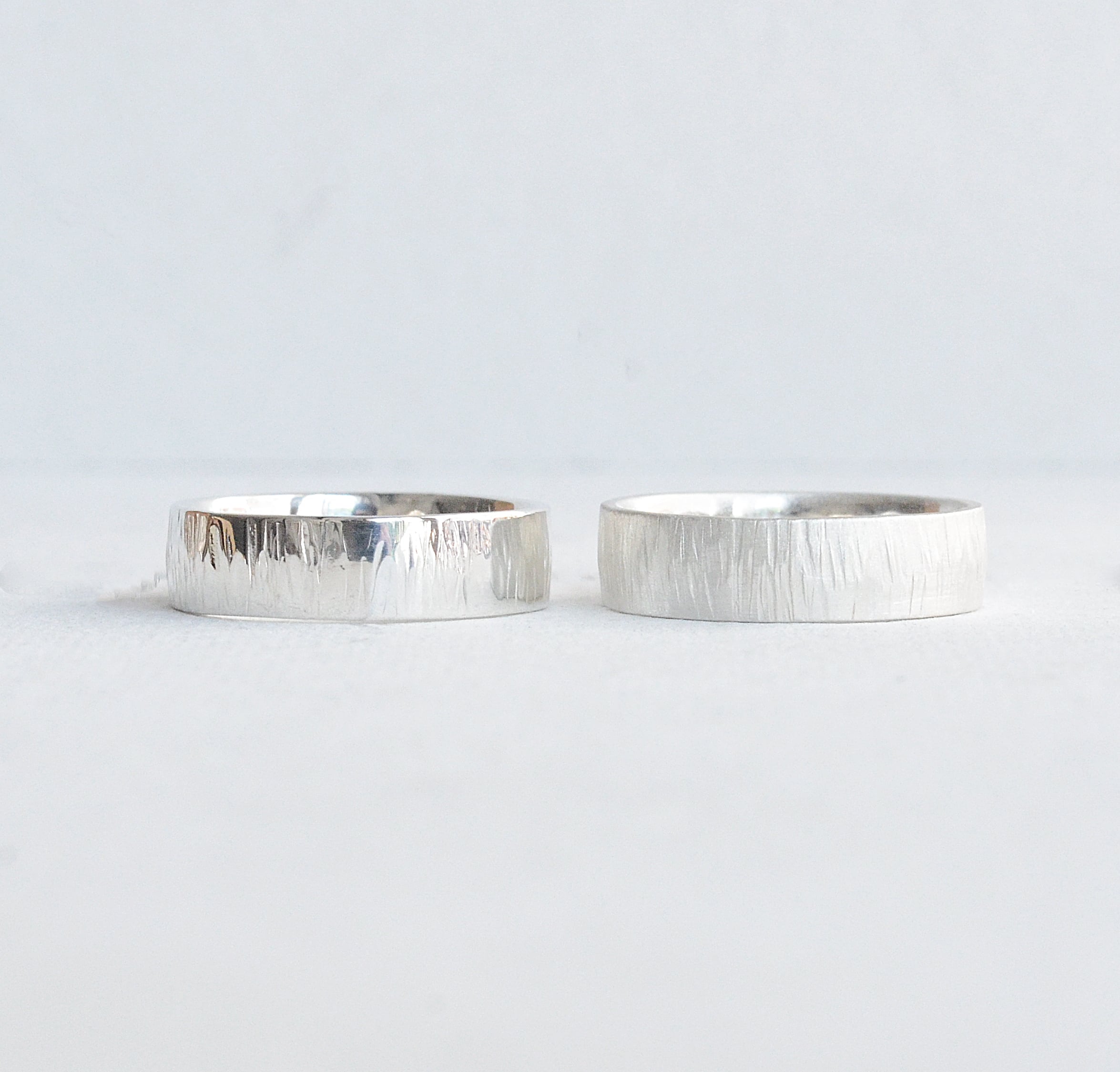 職人がリングの表面を金槌で叩くことで、ランダムな縦のラインが生まれます。