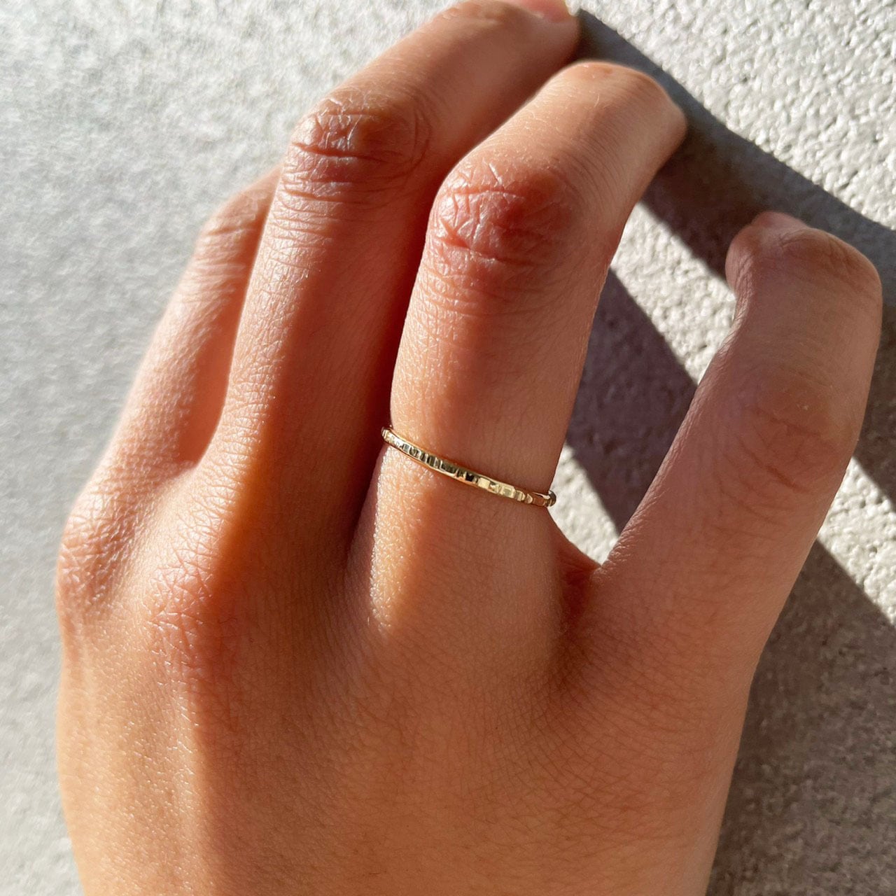 肌馴染みが良く、柔らかな輝きを纏うK10のリング。