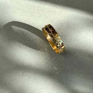 リング全体に施した槌目模様の真ん中に、キラキラと輝くスターダスト加工のラインを加えました。