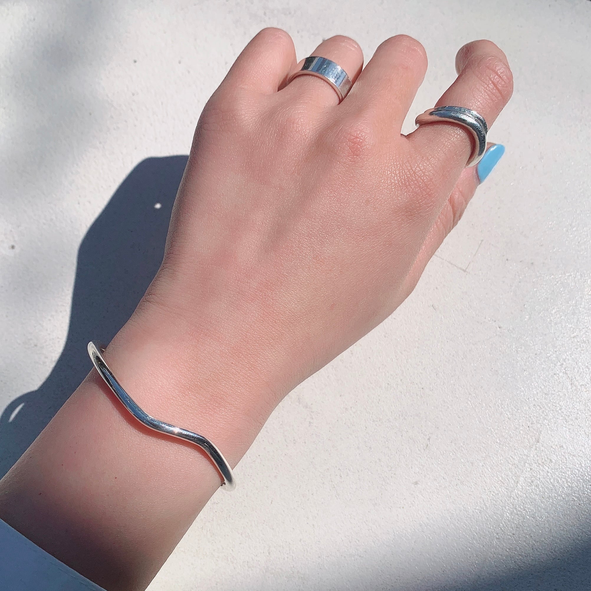 シンプルながらも、緩やかなカーブが程よいアクセントになるバングル。