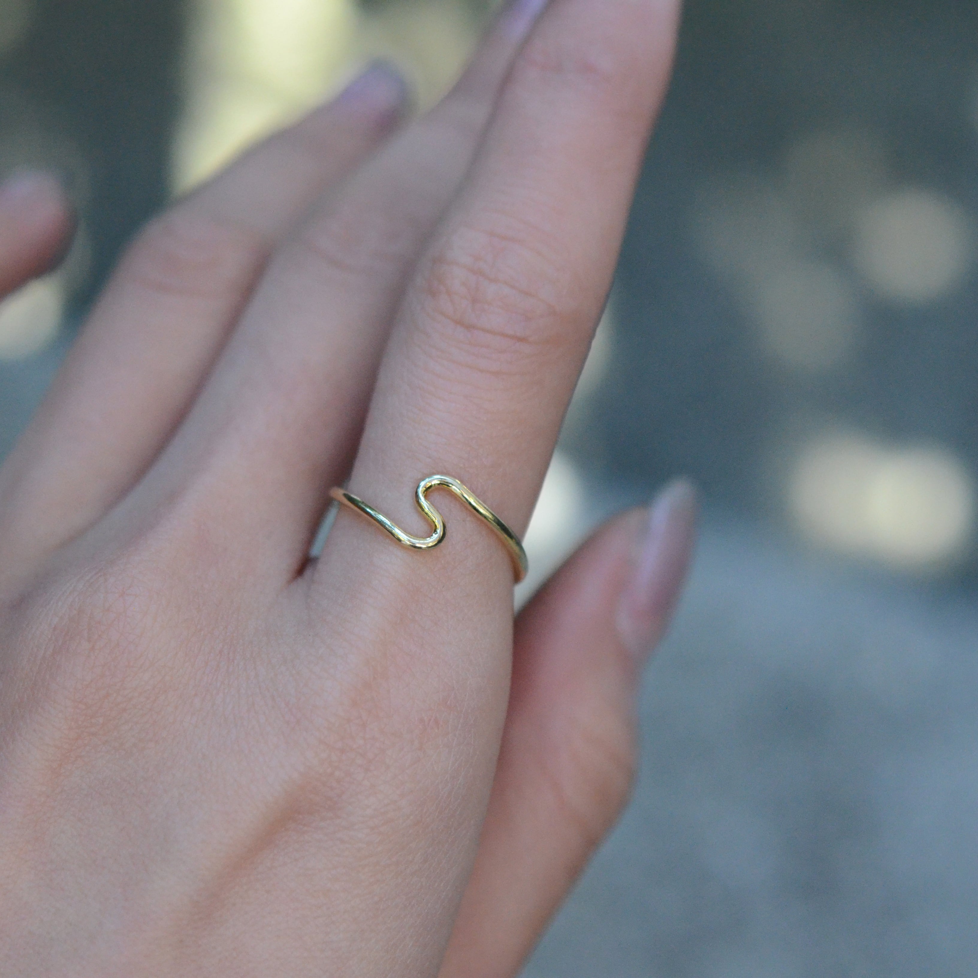 肌馴染みが良く、柔らかな輝きを纏うK10のリング。